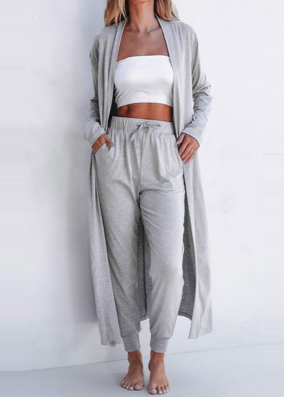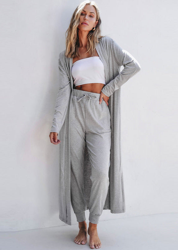 Ce costume deux pièces allie simplicité et élégance avec son pantalon fluide à cordon de serrage et son haut à manches longues. Parfait pour adopter un style décontracté tout en restant soignée, il vous accompagne lors de vos journées actives ou vos instants de détente.