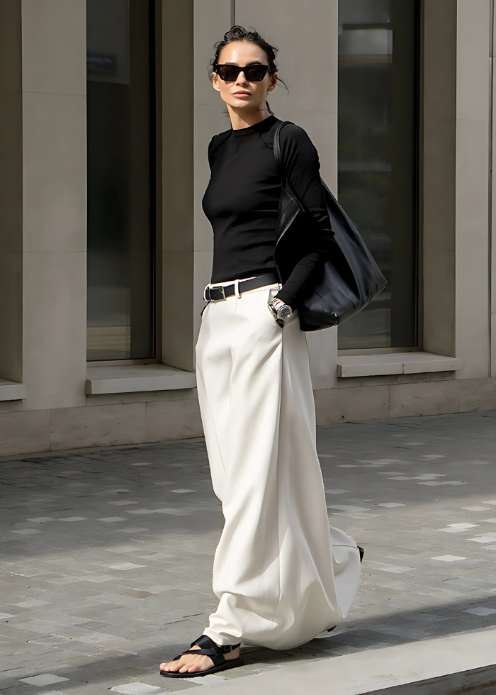 Associez-la avec un haut ajusté noir ou une chemise oversize blanche rentrée à la taille pour un contraste élégant. En hiver, elle se mariera parfaitement avec des bottines minimalistes et un manteau long. Pour une version décontractée, portez-la avec un t-shirt simple et des sandales plates.